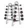 Holds 10 fixed barbells.
